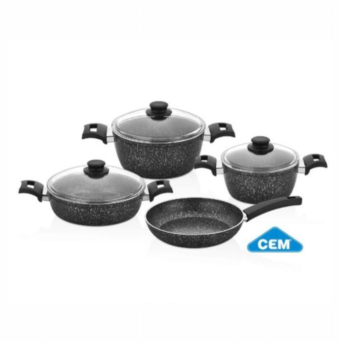 طقم اواني طهي جرانيت 7 قطع من CEM ،رمادي