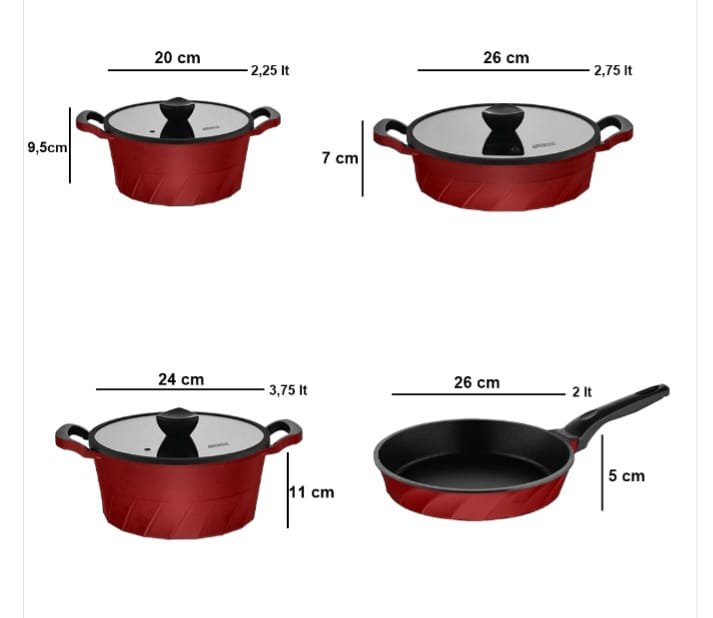 طقم قدور ومقالي أمبوس فينتو من حديد الزهر التيتانيوم، 7 قطع - أحمر: نظرة عامة شاملة طقم أمبوس فينتو من حديد الزهر لا غنى عنه في مطبخك، يجمع بين الأناقة والأداء. بفضل طلاء التيتانيوم، يتميز بمقاومته للخدش ومتانته وسهولة تنظيفه. يوزع هيكله المصنوع من حديد الزهر فينتو الحرارة بالتساوي، مما يجعل أطباقك أكثر لذة. الميزات الرئيسية للمنتج: فينتو: يوزع الحرارة بالتساوي، مما يضمن لك وجبات شهية أكثر غطاء زجاجي: يُتيح لك التحكم في عملية الطهي ويحافظ على الحرارة. تصميم مقبض مميز: بفضل هيكله المريح، يوفر قبضة مريحة ومقاومة للحرارة. مناسب لجميع أنواع المواقد باستثناء مواقد الحث: يمكن استخدامه على مواقد الغاز الطبيعي والكهرباء والسيراميك. محتويات الطقم (عادةً): قدر عميق 20×9.5 سم، 2.25 لتر قدر عميق 24×11 سم، 3.75 لتر قدر منخفض 26×5 سم، 2.75 لتر مقلاة 26×7 سم، 2 لتر لماذا تختار طقم قوالب أمبوس فينتو؟ المتانة: فينتو متينة بفضل هيكلها المصبوب. طهي متساوٍ: يُتيح لك طهي وجباتك بلذة أكبر من خلال توزيع الحرارة بالتساوي. سهل التنظيف: سهل التنظيف بفضل طلاء التيتانيوم. تصميم أنيق: يُضفي لمسة عصرية على مطبخك. استخدامات متعددة: يُمكنك تحضير العديد من الأطباق بفضل الأواني والمقالي بأحجامها المختلفة. الاستخدامات وجبات يومية: يُمكنك تحضير جميع وجباتك بسهولة، مثل الحساء واليخنات والقلي السريع. الأطباق المميزة: مثالية للأطباق المميزة مثل أرز البيلاف،وأطباق اللحوم. الخبز: يمكن استخدامه أيضًا للخبز. تتيح لك المنتجات المصبوبة طهي أطباق شهية على درجات حرارة منخفضة وفي وقت قصير بفضل توزيع الحرارة المتساوي والسريع على سطحها. بفضل طلاء التيتانيوم الخاص بها، فإن منتجاتنا لا تخدش أو تصدأ عند استخدامها بشكل صحيح. إنها مناسبة لطهي اليخنات واللحوم والدجاج. وهي آمنة للاستخدام في الفرن، حيث تسخن بسرعة وتوزع الحرارة بالتساوي، مما يسمح لك بالطهي دون فقدان النكهة.