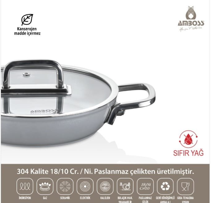 مجموعة أواني طهي AMBOSS DIAMOND من- الاينوكس – الفولاد 18/10 Cr-Ni المقاوم للصدأ، مكونة من 8 قطع، مع غطاء زجاجي