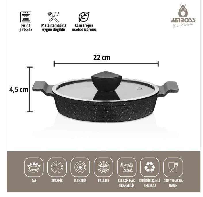 طقم مقلاة أمبوس أسترال جرانيت من 6 قطع من الحديد الزهر مع غطاء زجاجي: الشيف الجديد في عالم المطابخ ستصبح مجموعة مقالي أمبوس أسترال، المكونة من 6 قطع، قطعة أساسية في مطبخك بفضل ميزاتها الفاخرة وتصميمها الأنيق. فهي توفر تجربة طهي صحية ومريحة، لا سيما بفضل طلاء الجرانيت والأغطية الزجاجية. مميزات المنتج: 6 قطع غنية بالمحتوى: بفضل أحجام المقالي المختلفة (18 سم، 20 سم، و22 سم)، يمكنكِ تحضير جميع أنواع الوجبات بسهولة. طبقة من الجرانيت: السطح الداخلي مطلي بالجرانيت، مما يجعل المقلاة مقاومة للخدش، وغير لاصقة، وسهلة التنظيف. مادة مقاومة للهب بثلاث طبقات: مطلية بثلاث طبقات من مادة مقاومة للهب وغير لاصقة، مثالية للطهي الصحي. غطاء زجاجي: يتيح لكِ التحكم في عملية الطهي ويسمح بطهي أسرع من خلال حبس الحرارة في الداخل. مقاوم للخدش واللهب: يضمن استخدامًا طويل الأمد. ضمان لمدة عامين: ضمان الشركة المصنعة لمدة عامين دليل على ثقتها بجودة المنتج. آمنة للغسل في غسالة الأطباق: تُسهّل التنظيف. آمنة للطعام: آمنة على صحتكِ. لماذا تختار طقم أمبوس أسترال المكون من 6 قطع؟ طهي صحي: بفضل خاصية عدم الالتصاق، يمكنكِ تحضير وجبات صحية باستخدام زيت أقل. المتانة: يتميز بهيكل متين يدوم لسنوات طويلة. استخدامات متعددة: يمكنكِ تحضير جميع أنواع الوجبات بفضل أحجام المقالي المختلفة. استخدام عملي: بفضل الأغطية الزجاجية، يمكنكِ مراقبة عملية الطهي وتنظيفها بسهولة في غسالة الأطباق. تصميم أنيق: يمنح مطبخكِ مظهرًا عصريًا وأنيقًا. محتويات الطقم مقلاة 18 سم بغطاء زجاجي مقلاة 20 سم بغطاء زجاجي مقلاة 22 سم بغطاء زجاجي الخلاصة ستُشكّل مجموعة مقالي أمبوس أسترال، المكونة من 6 قطع، إضافةً أساسيةً لمطبخك بفضل أناقتها ووظائفها العملية. إذا كنت تبحث عن أواني طهي صحية ومتينة ومتعددة الاستخدامات، فإن أمبوس أسترال هي الخيار الأمثل لك! معلومات إضافية: تعليمات العناية: لحماية طبقة الجرانيت، تجنّب استخدام الأدوات المعدنية. التنظيف: آمنة للاستخدام في غسالة الأطباق، ولكن غسلها يدويًا يُطيل عمرها الافتراضي.