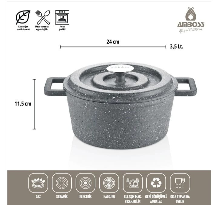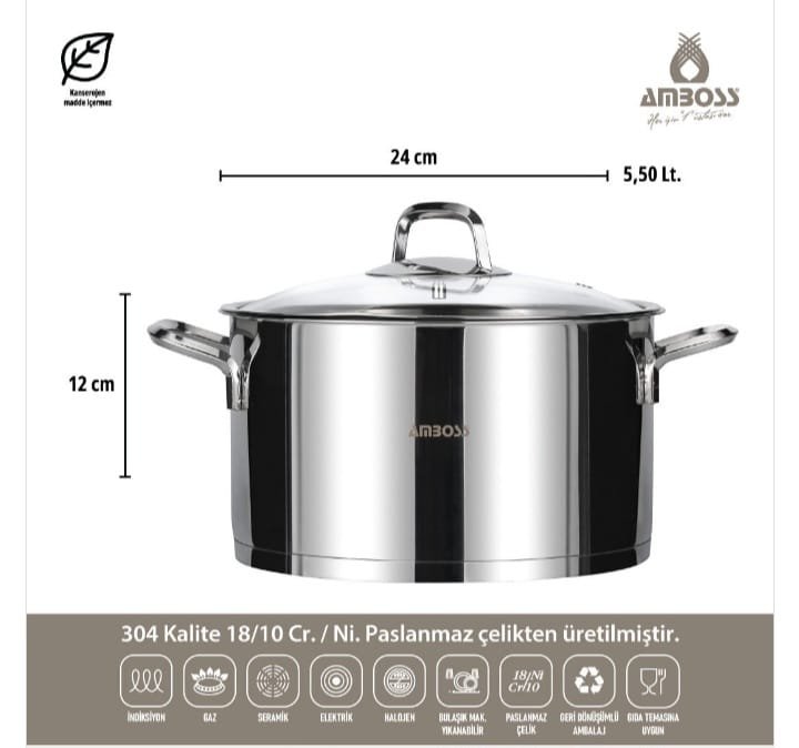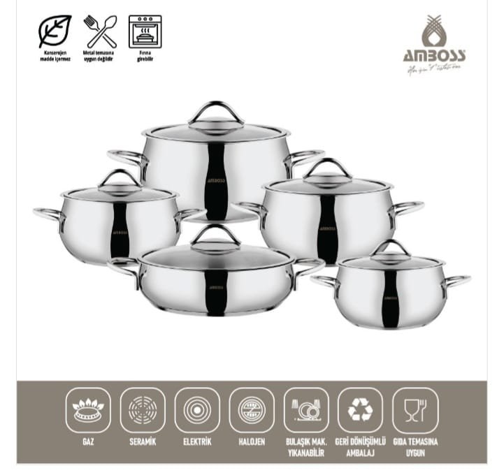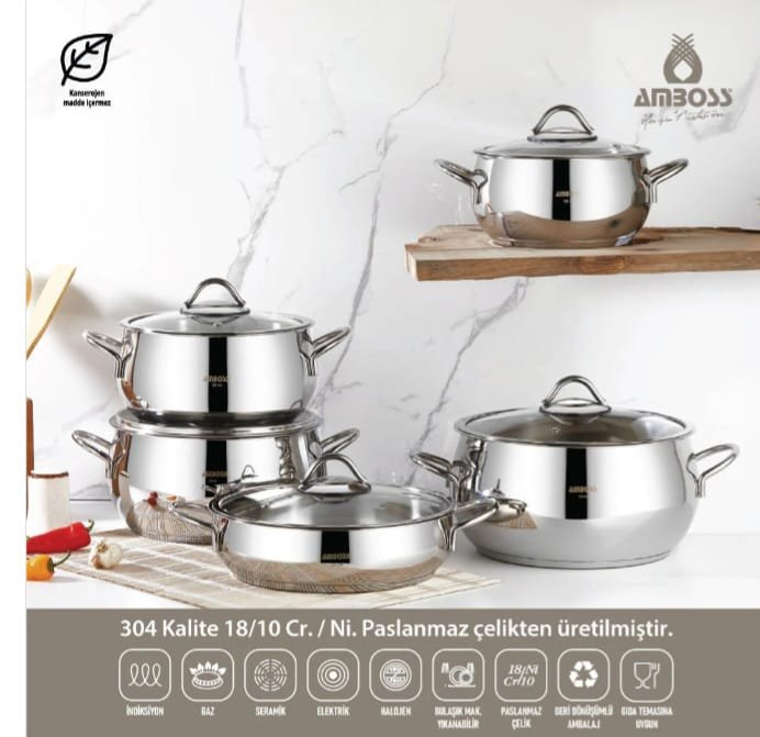 مجموعة أواني طهي  AMBOSS DIAMOND من – الاينوكس-الفولاد 18/10 Cr-Ni المقاوم للصدأ،