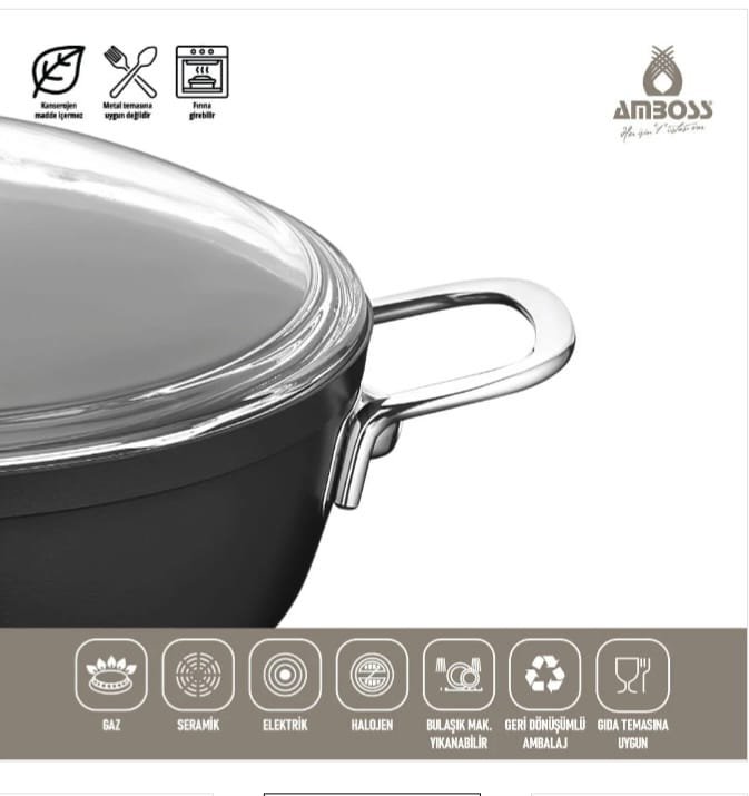 آمنة للاستخدام في غسالة الأطباق. حاصلة على شهادات عالمية، ولا تحتوي على أي مواد ضارة بصحة الإنسان (بكتيريا أو مسرطنة). يتميز بسطح غير لاصق مقاوم للهب. يوفر متانة فائقة. يمكن طهي البيض بدون زيت. يمكن طهي الخضراوات بدون زيت. بفضل طلاء التيتانيوم الخاص على منتجاتنا، لن تخدش أو تصدأ عند استخدامها بشكل صحيح. يسخن بسرعة ويوزع الحرارة بالتساوي، مما يسمح لك بالطهي دون فقدان النكهة. لإضافة لمسة من الأناقة إلى مطبخك ونكهة مميزة لأطباقك، فإن طاجن أمبوس الداكن العميق مصمم خصيصًا لك.
